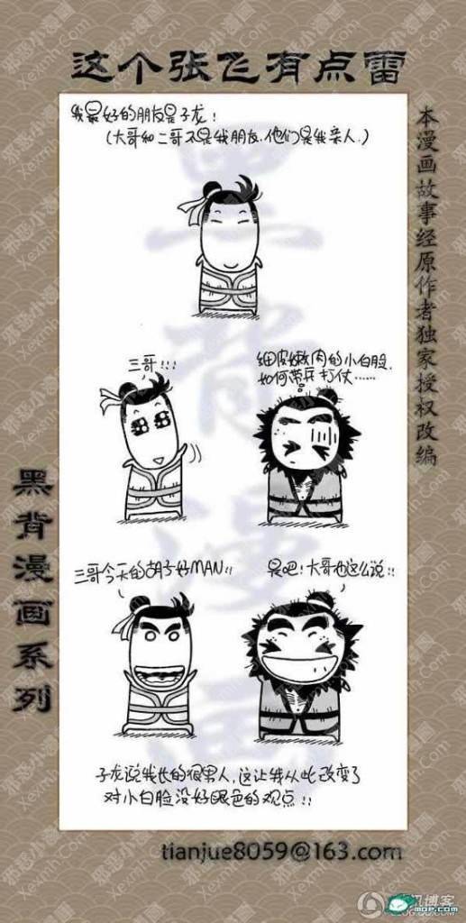 猛张飞看似粗犷,但心思也是非常细密的!刘关张好基友,腹黑的孔明,娘炮的子龙,龌龊的魏延,原来三国也是可以如此可爱的。